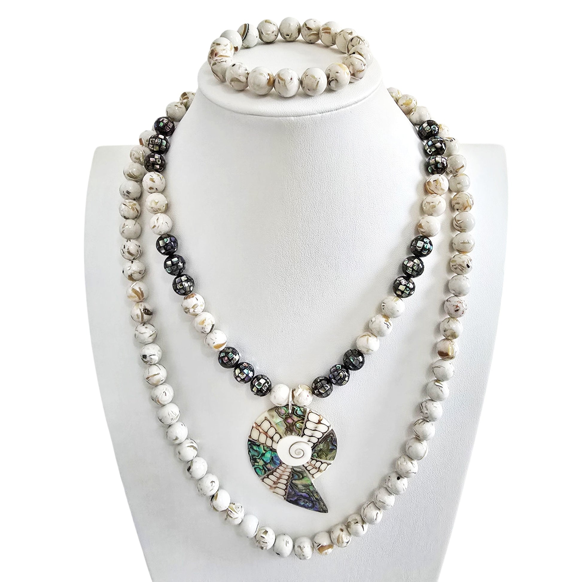 Paua Abalone Shell Beaded Layering Necklace & Bracelet Set - All 3 Included In Set
