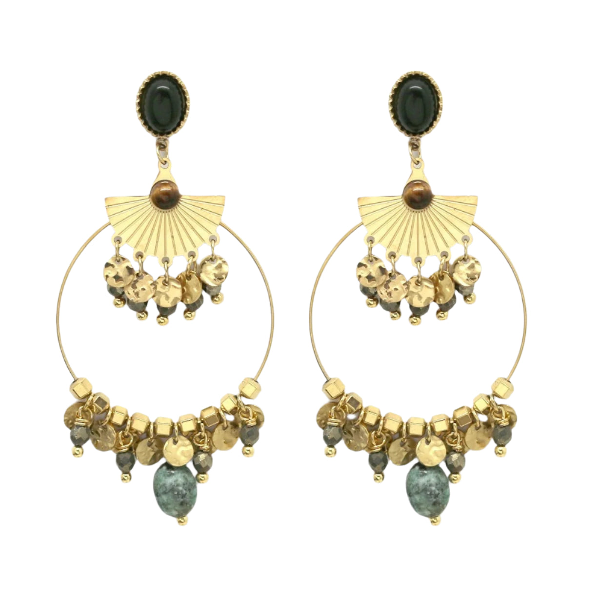 Brighten your style with these playful African Turquoise and Gold Cross Earrings, blending vibrant African Turquoise hues with gleaming gold for a fun and unique accessory.