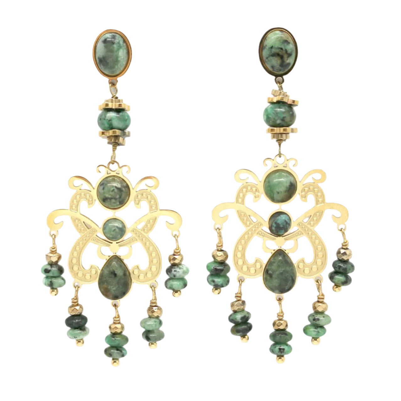 Elevate your style with these Chandelier African Turquoise Gold Dangle Earrings, where bold meets beautiful.