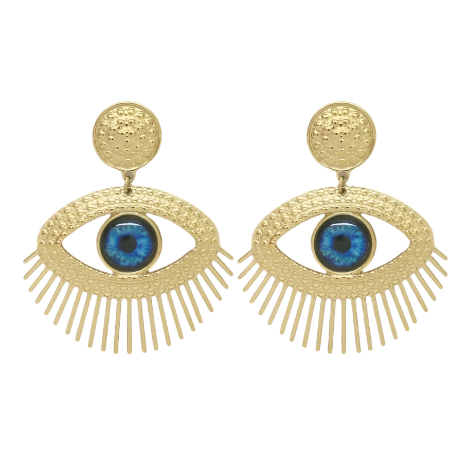 Add a splash of whimsy to your look with these Blue and Gold Eye earrings.