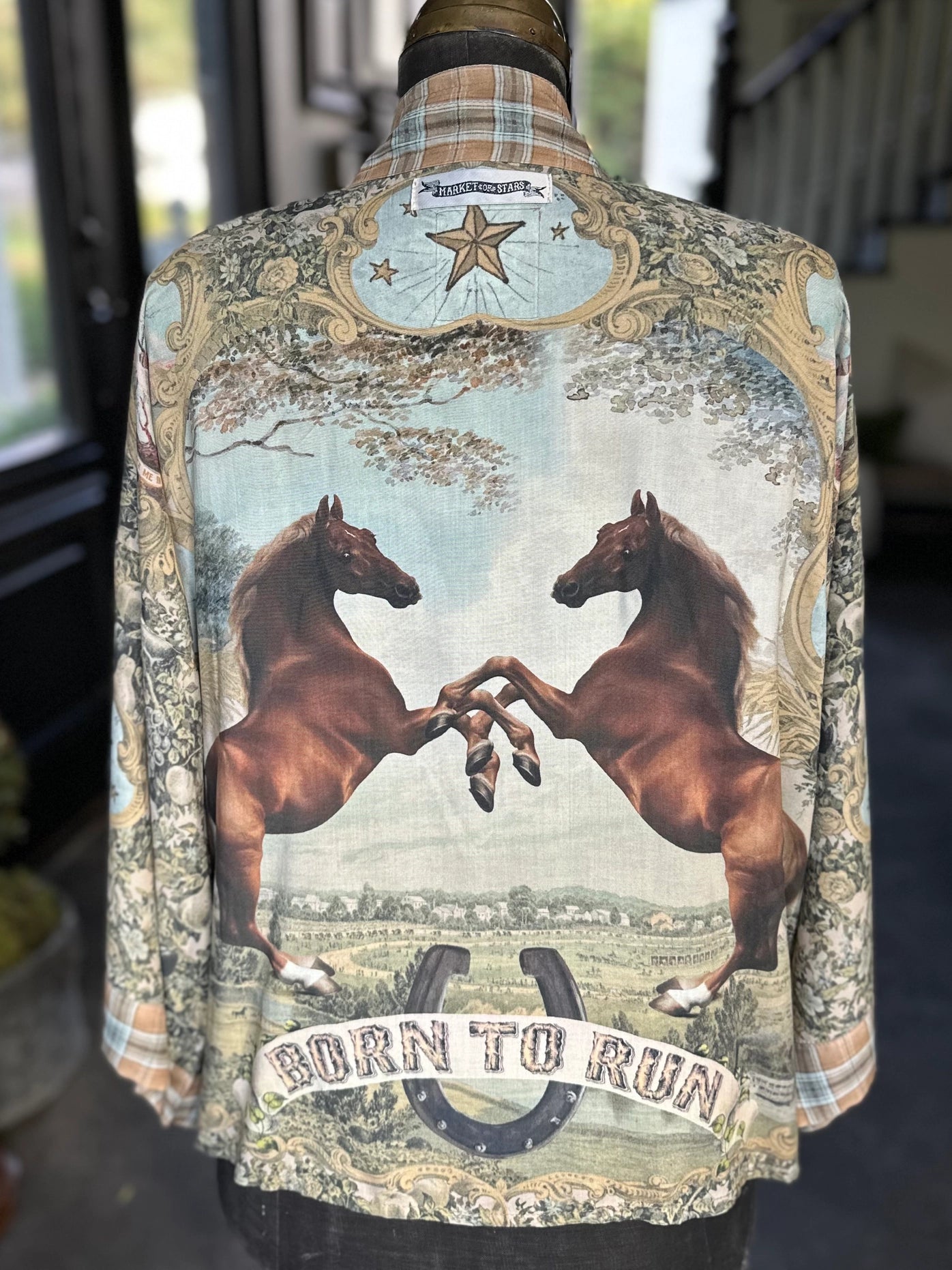 Born To Run Pixie Duster Crop Kimono Horse & Flower Print - Pre-Order - Ships In September