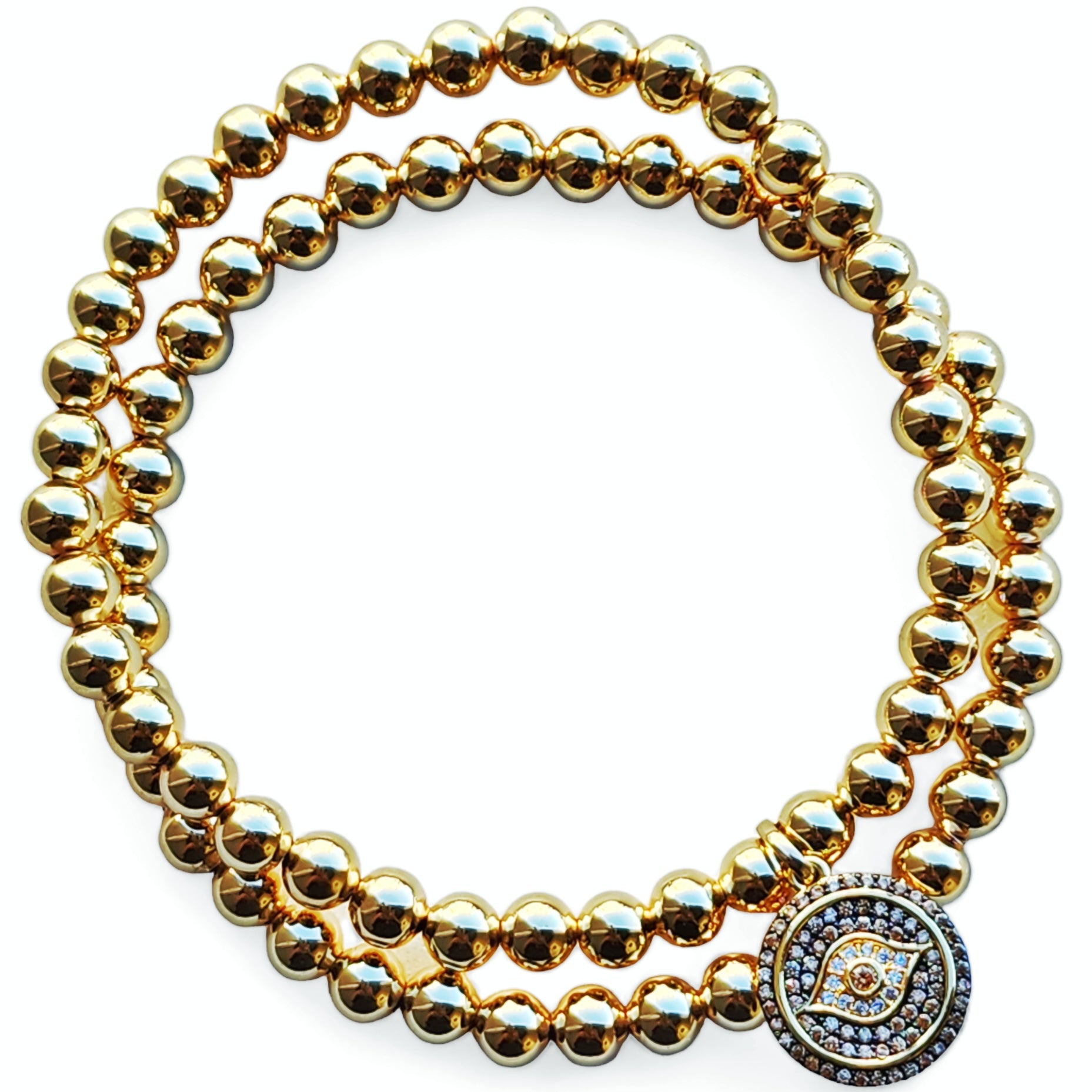 Make a statement with these shimmering 18kt Gold Filled Evil Eye Reiki Healing Protection Bracelets!
