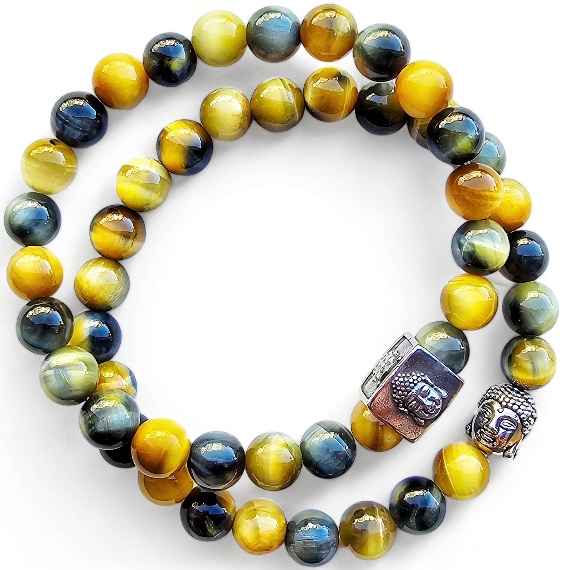 Blue & Gold Tiger's Eye Unisex Buddha Reiki Healing Beaded Gemstone Bracelets