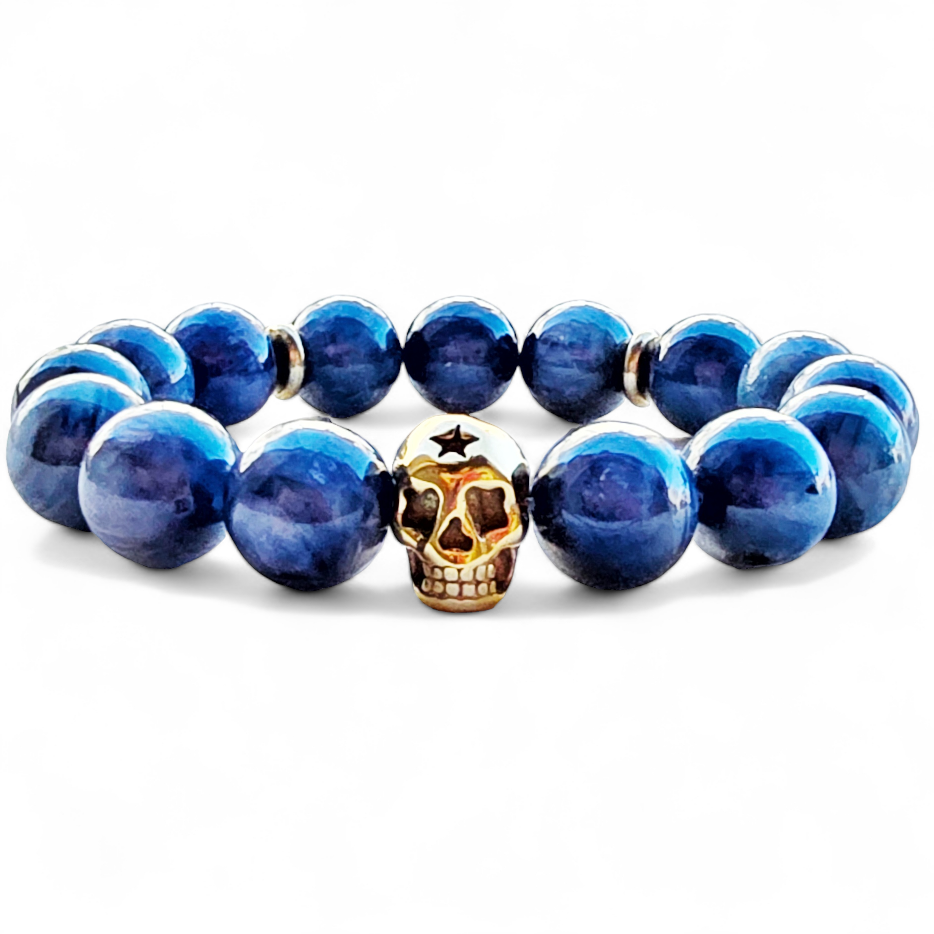 12mm Kyanite Skull Unisex Reiki Healing Beaded Gemstone Bracelet