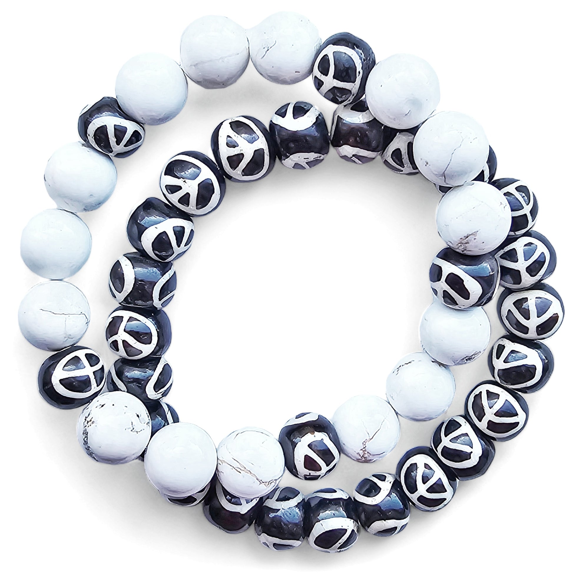Magnesite & African Ox Bone Peace Unisex Reiki Healing Gemstone Bracelets
