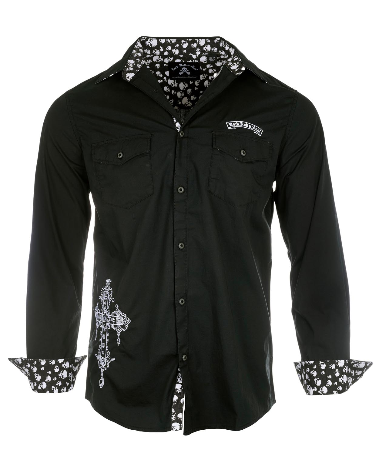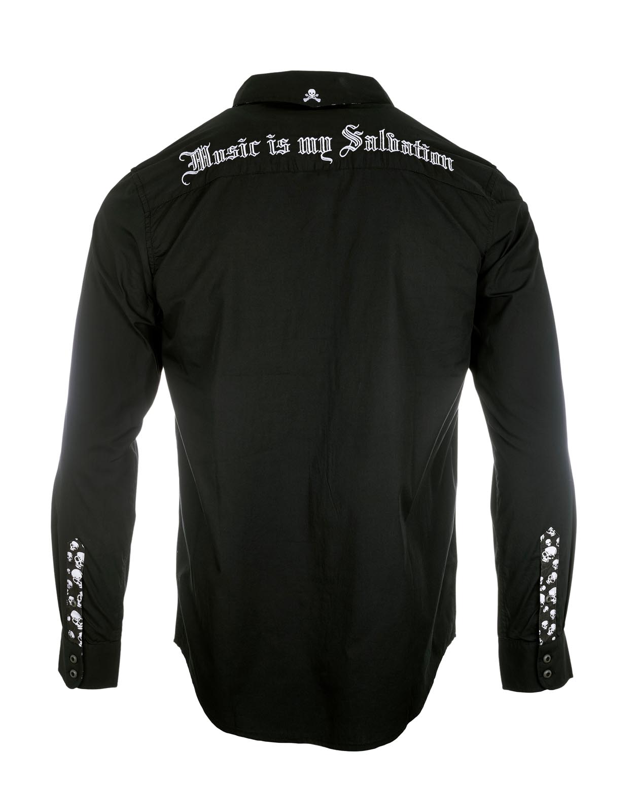 Contrast Skull Fabric Under Collar, Cuffs & Placket