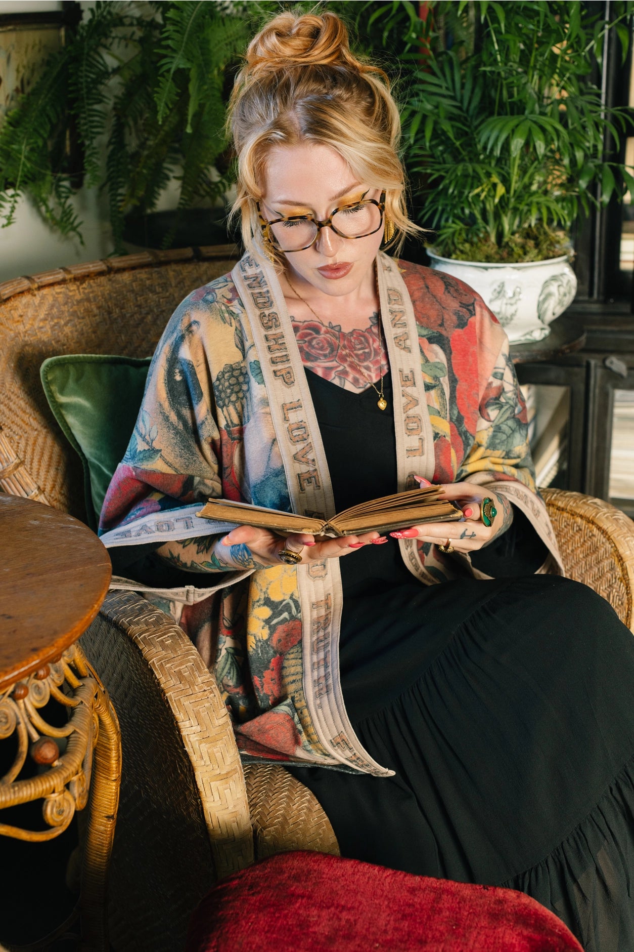 We created this eclectic, super cool cardigan from an 1880s print unearthed in a library archive, and adapted the utterly charming wood-grain lettering to build the trim.