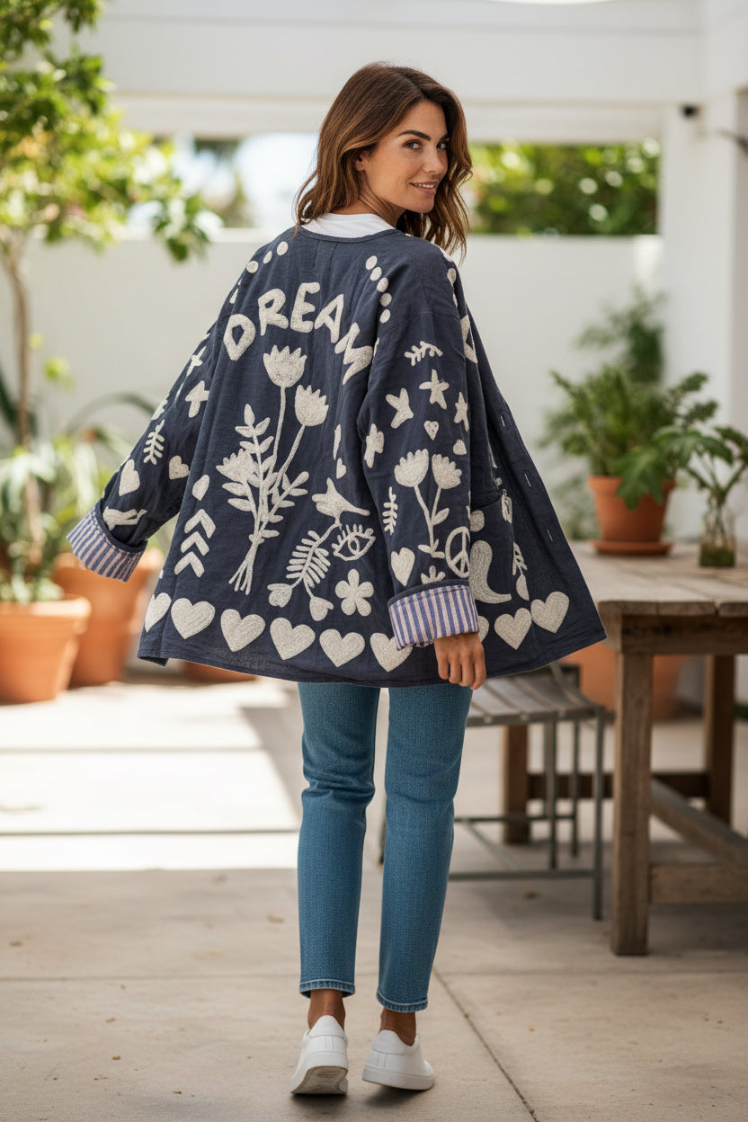 Every stitch honors both the makers and the planet, making this jacket a feel-good piece that looks absolutely stunning.