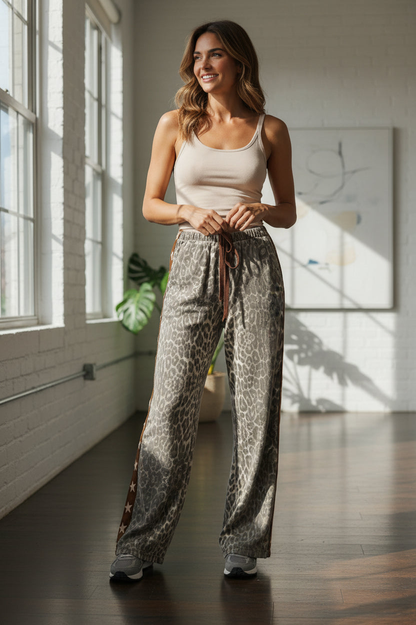 Slip into comfort with our Leopard Printed Star Drawstring Lounge Pants, the perfect blend of cozy and chic.