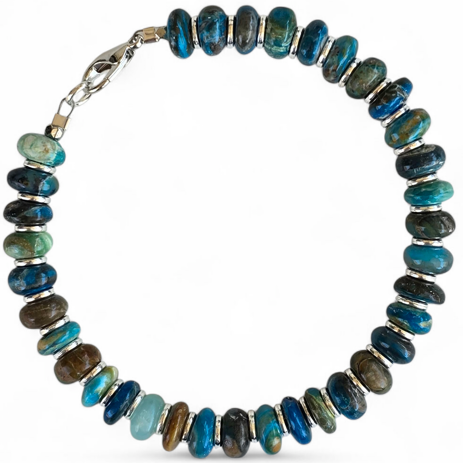 Featuring natural Blue Opal beads that shimmer with every movement, each piece is uniquely vibrant.