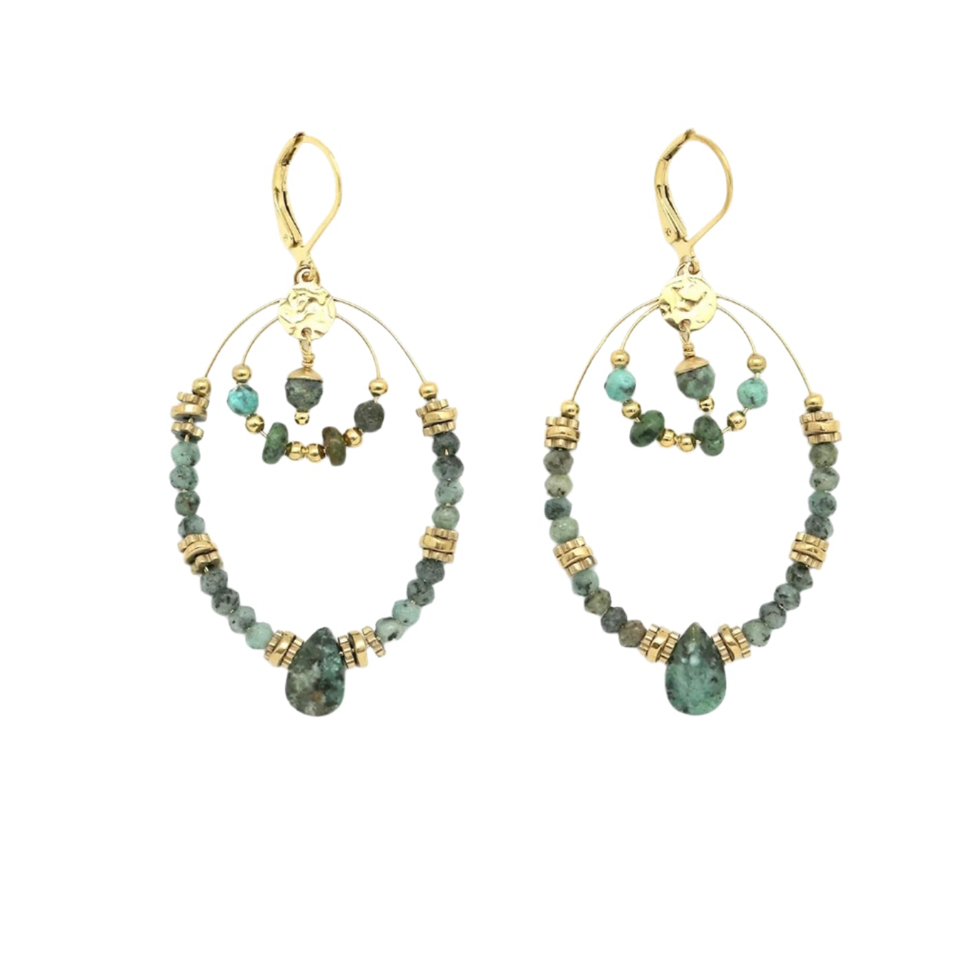 Bring a burst of color and texture to your accessory collection with these Oval African Turquoise Beaded Earrings.
