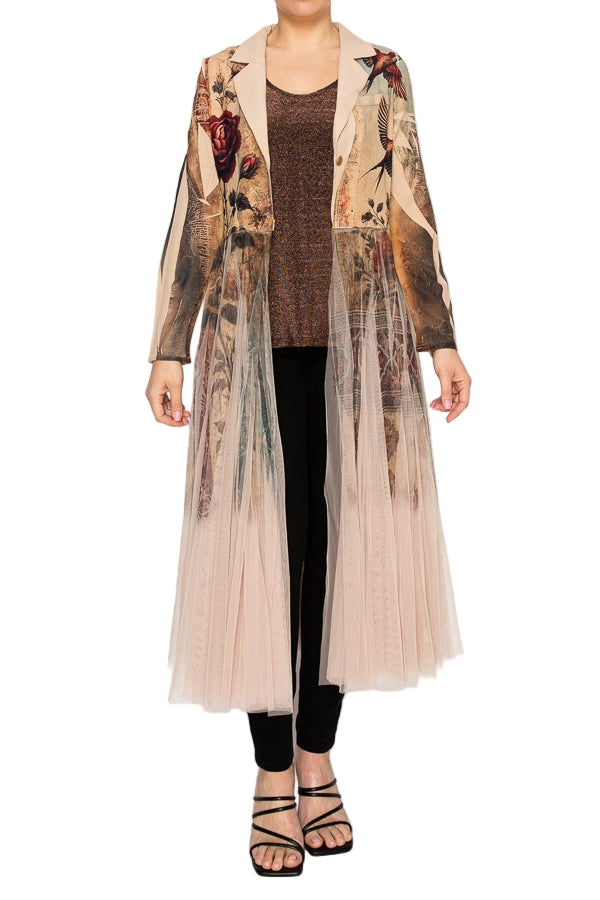 Vintage Bird Chic Contrast Longline Blazer Jacket with Mesh Tulle Panel - Ships Late September