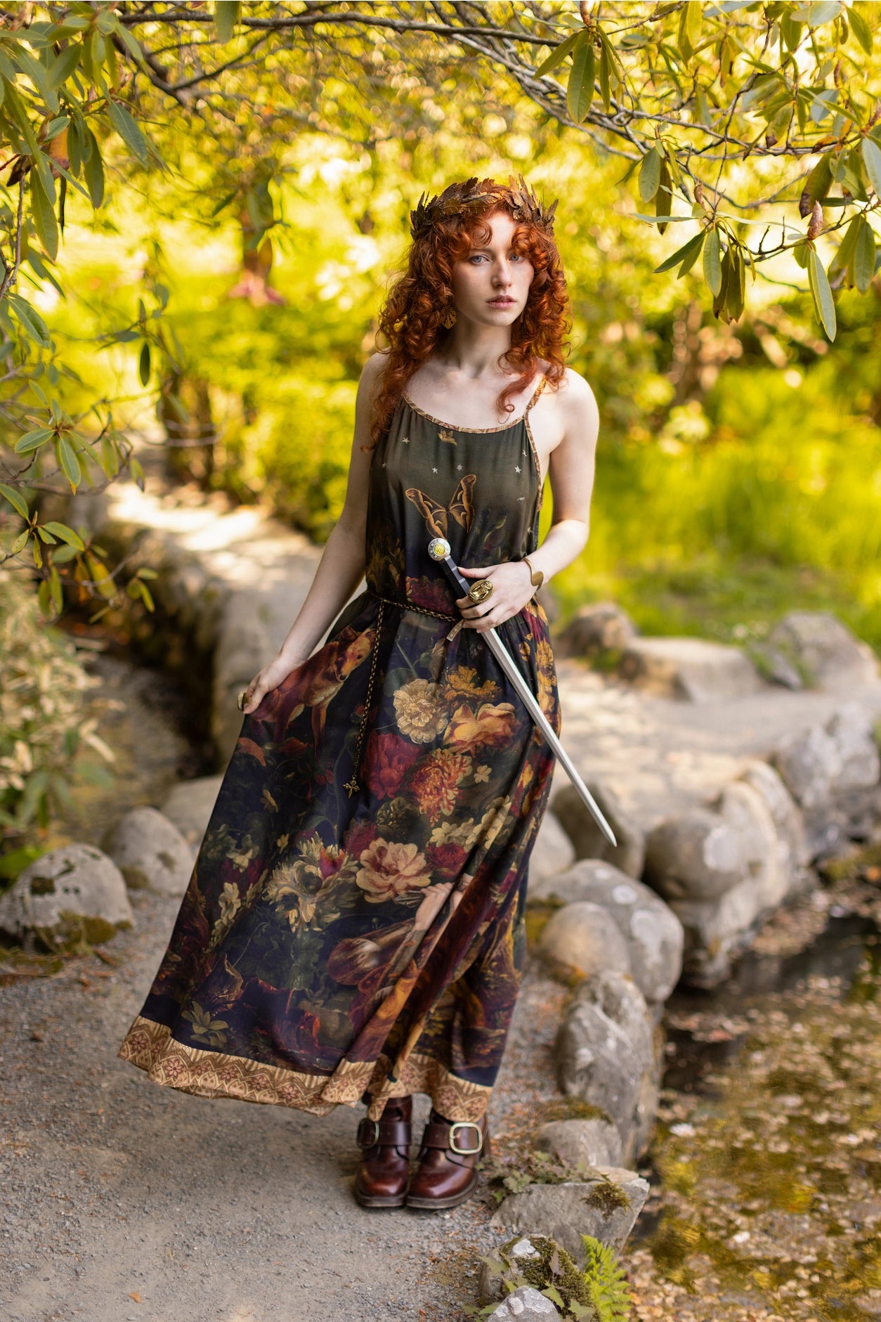 The Messenger Long Maxi Slip Dress w/ Joan of Arc & Florals - Pre-Order Ships September2025