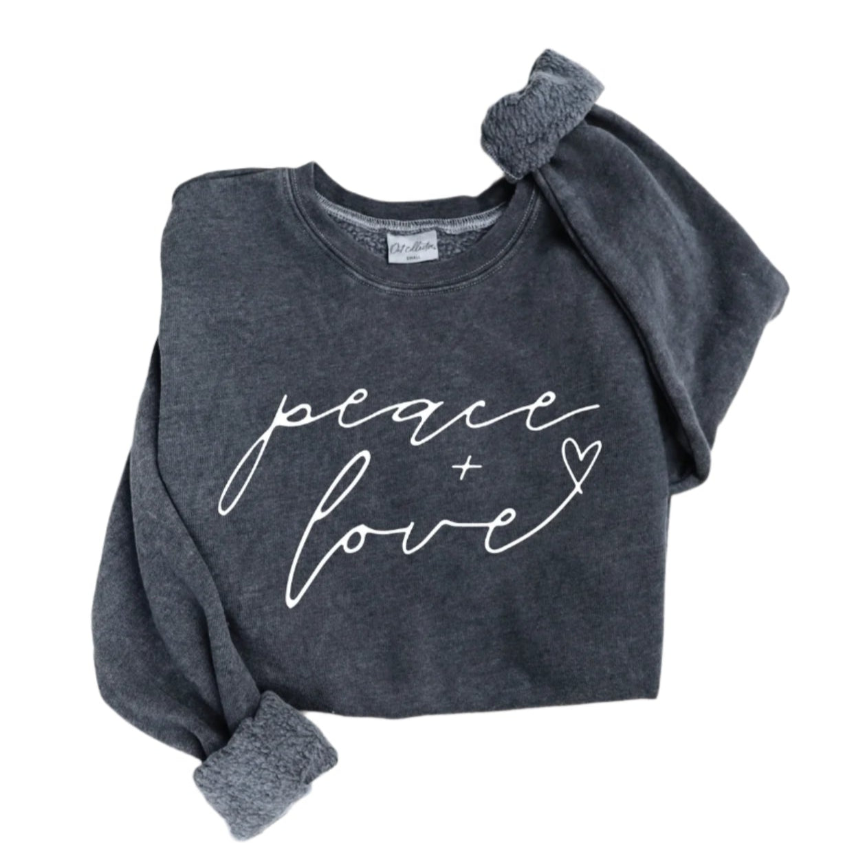 Enjoy your weekends in cozy style with this Peace + Love graphic sweatshirt.